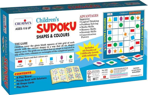 Children must compete with their friends to fill the 6x6 grids with different shapes until each row and column contain all the shapes.
