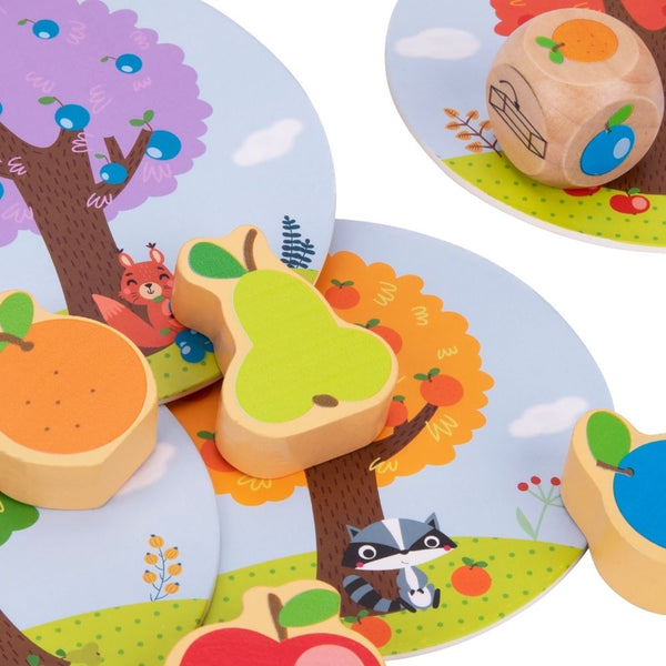 Squirrel Orchard is a fun cooperative game that helps children build colour recognition, fine motor skills and teamwork. Players roll the dice to collect matching fruit, pick any fruit or move the squirrel closer to the top of the tree.