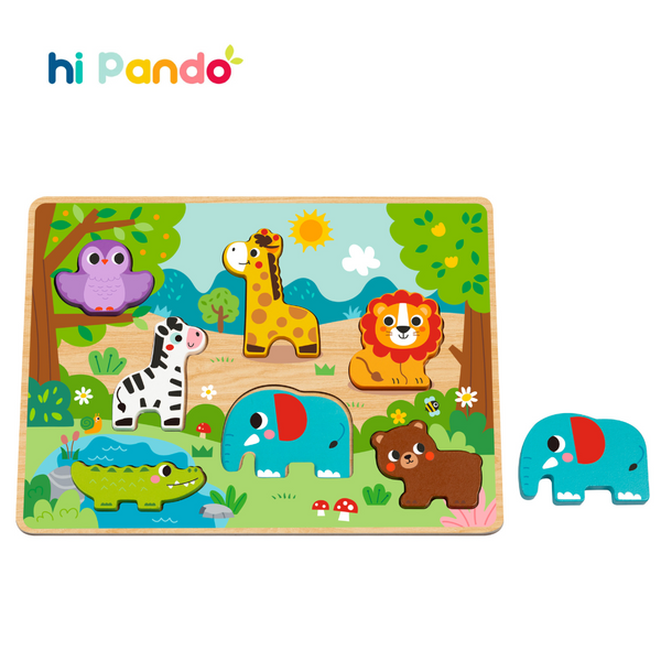 Go on a safari adventure with the hi Pando Chunky Wooden Puzzle - Wild Animals, perfect for curious little explorers.