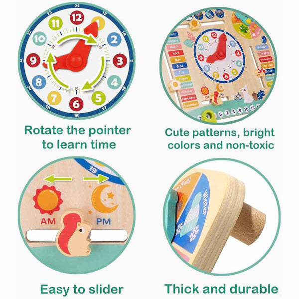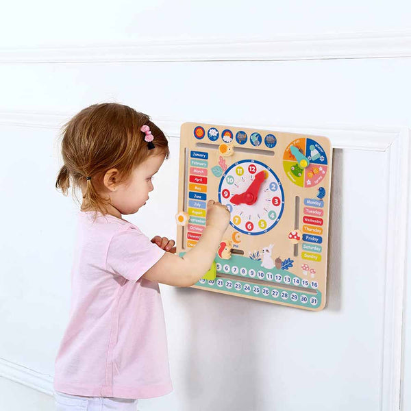 This fun and interactive calendar toy helps children learn the days of the week, the months of the year, seasons, weather and more.