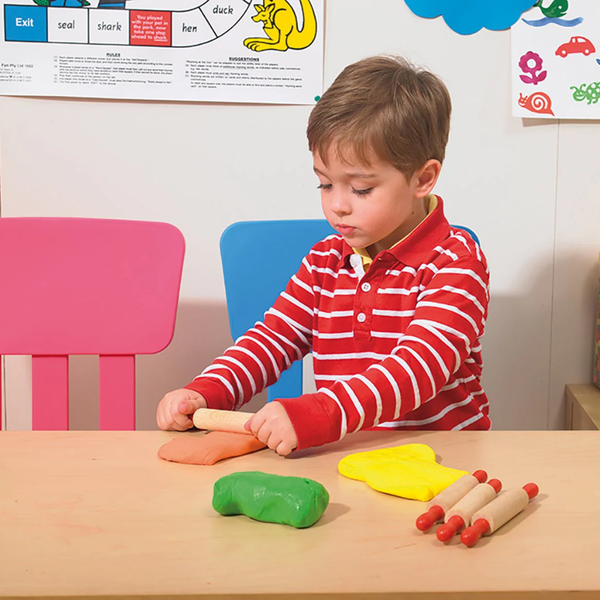 Encourage hands-on learning, creativity, and fine motor skill development with this set of wooden rolling pins designed specifically for dough play. Ideal for early childhood education, these rolling pins help children strengthen hand muscles, improve coordination, and explore creativity through tactile play.